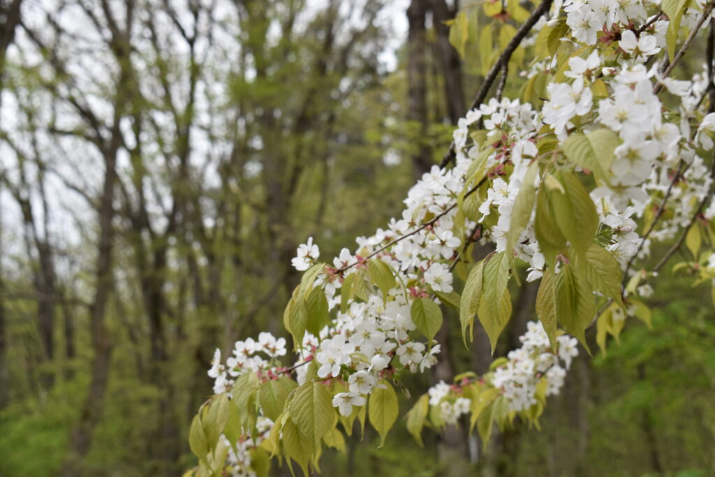 野草園では、5月に入ると世界で野草園でしか見ることのできないミヤマカスミザクラの花が見頃を迎えます。 他にもシラネアオイ、アズマシャクナゲ、サクラソウなど人気の植物も見頃を迎えます。ぜひ、ご来園ください。