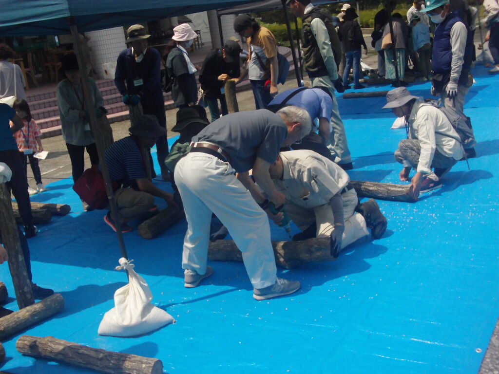 ※菌打ちをする原木は1mほどでナメコ・シイタケあわせて2本持ち帰りいただきます。